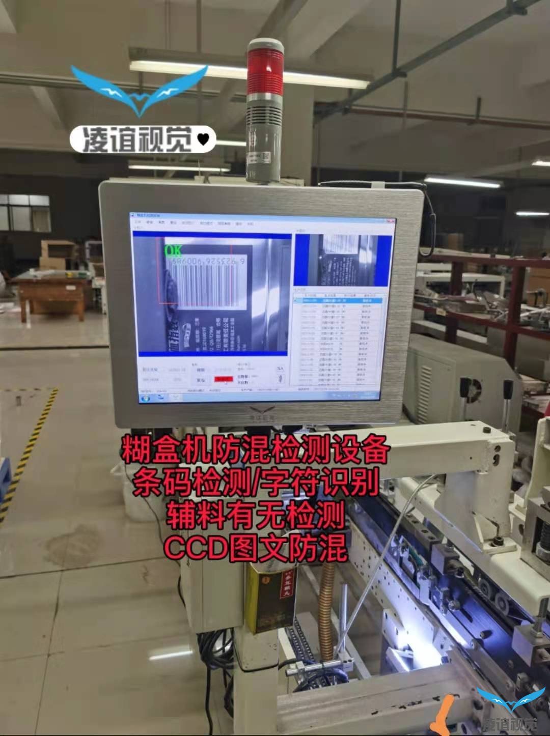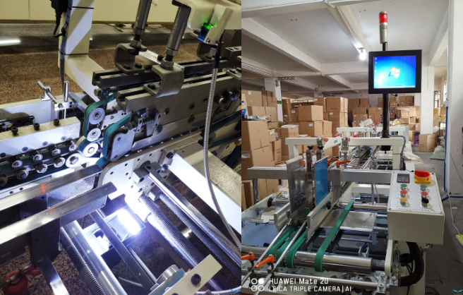 ? ? ? ?紙品包裝視覺混料檢測系統(tǒng)是加裝在紙盒成型機(jī)糊盒機(jī)機(jī)臺上,通過機(jī)器視覺檢測的技術(shù),實(shí)現(xiàn)對紙盒的防混檢測,達(dá)到“0”混料的目的的一種視覺檢測應(yīng)用。傳感器觸發(fā)相機(jī)對產(chǎn)品印刷面進(jìn)行拍照,通過圖形文字比對、一維碼二維碼識別、鐳射圖案、色塊顏色識別等方式實(shí)現(xiàn)防混料的目的,當(dāng)發(fā)現(xiàn)混料時,可自動停機(jī)供人工排查復(fù)位或?qū)⑿盘杺鬏斀o剔除機(jī)構(gòu)(需要機(jī)臺具備自動剔除功能)實(shí)現(xiàn)自動剔除。該系統(tǒng)適配機(jī)臺速度,最高可達(dá)70000pcs/h,做保障產(chǎn)能的同時杜絕混料的產(chǎn)生,真正的實(shí)現(xiàn)了“0誤差”的高效生產(chǎn),大受各類盒子生產(chǎn)廠家歡迎……