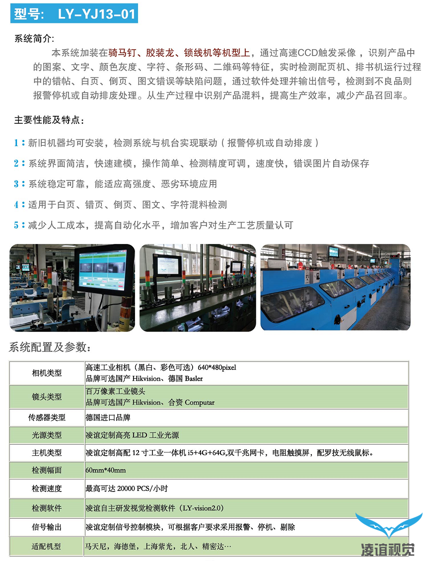 宿遷[印后裝訂加工]在線檢測錯(cuò)頁/倒置/印刷缺陷/圖文防混檢測設(shè)備由深圳凌誼視覺科技有限公司自主研發(fā),利用CCD視覺技術(shù)幫助江蘇地區(qū)印刷包裝企業(yè)低成本加裝視覺檢測設(shè)備解決生產(chǎn)過程中出現(xiàn)的錯(cuò)、漏、混料等問題。
