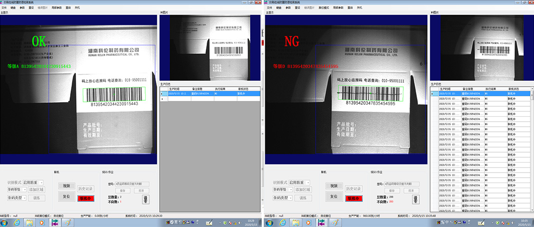 以上CCD條碼等級判定及防重碼檢測系統由凌誼視覺公司自主研發,幫助包裝企業解決藥包藥品包裝盒上監管碼是否存條碼等級不良及重碼,印刷缺陷等問題